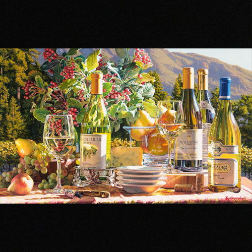 Christensen’s “wine art”” begins where most contemporary wine artists leave off. Eric loves to capture the romance of the wine country, which he points out, “is so much more than just the wine”. Collectors of Christensen’s art typically own several of his creations and enjoy the varied themes they portray; lifelike landscapes and intimate still life paintings that incorporate a variety of elements including food, flowers or fruit with appropriate background settings.