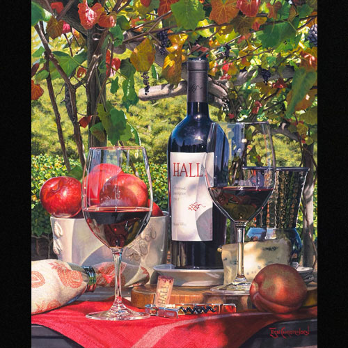 Christensen’s “wine art”” begins where most contemporary wine artists leave off. Eric loves to capture the romance of the wine country, which he points out, “is so much more than just the wine”. Collectors of Christensen’s art typically own several of his creations and enjoy the varied themes they portray; lifelike landscapes and intimate still life paintings that incorporate a variety of elements including food, flowers or fruit with appropriate background settings.