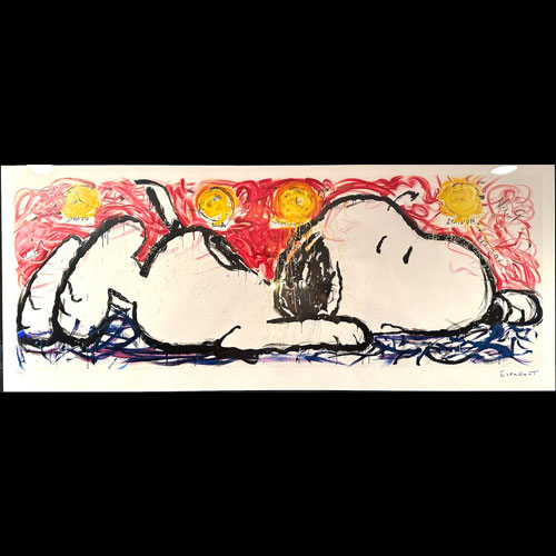 In 2011 he exhibited 97 works, titled “Crashing The Party” a solo exhibition at the Animazing Gallery in New York. Tom Everhart continues to lecture around the world on the artwork of Charles M Schulz and to communicate the unique collaborative relationship they shared, as a cartoonist and a painter. To this he has dedicated his life. After living in San Francisco, Paris, New York, Washington D.C., Baltimore, and London, in 1997 Tom Everhart moved to Venice, California where he now lives with Jennifer, his wife and director of their studio. Today, Everhart is the only fine artist educated by Schulz and legally authorized by both Charles Schulz and Iconix to use subject matter from Schulz’s Peanuts strip to create fine art.