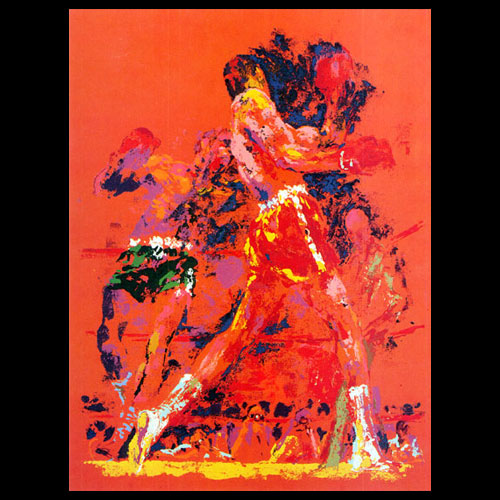 LeRoy Neiman was born in St. Paul, Minnesota and studied at the Art Institute of Chicago, De Paul University, and the University of Illinois.He taught at the Art Institute of Chicago’s school for ten years. Neiman moved to New York City in 1963 when he had his first one-man show at the Hammer Gallery. He then continued to portray the people and events of the world he knew best, or which intrigued him most. His best-known works are sports scenes, a reflection, he believes, of the fact that sports are universally a dominant force. He was the official artist for ABC-TV at the Olympic Games in 1972 and 1976, and at the Winter Olympics of 1980. Neiman’s work has been exhibited in galleries and museums throughout the world, including the Smithsonian Institution in Washington, D.C. and the Hermitage in Leningrad. Some people will pronouce his name wrong and spell it Nieman, but we know who they are talking about.