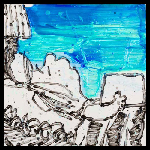 In 2004 Everhart showed a group of nine large-scaled paintings titled “Dots Dogs Drips” with the S2 Art Gallery in Chicago that then traveled to Osaka and Tokyo in 2005. For the next two years Everhart worked to produce two large bodies of works on paper, canvas, and wood. The first exhibition titled “Cracking Up” consisted of seventy-five artworks. The following exhibition Boom Shaka Laka Laka: The Lagoon Paintings was made up of three large scale paintings and one hundred fourteen works on paper ranging in sizes for 10″ x 12″ to 40″ x 60″. Both bodies of work were shown at the Jack Gallery.
