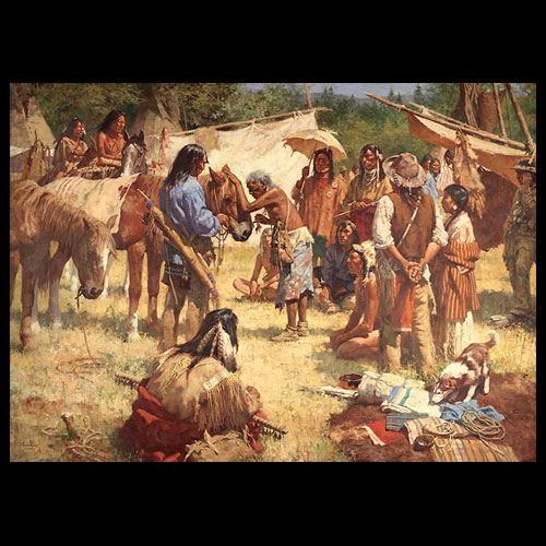 When Howard Terpning’s paintbrush touches the canvas, there is a profound commitment behind its spirit, a vital force that drives the originality of each painting with a heartfelt purpose. The compassion, strength, and vulnerability that radiates from the canvas is not only a testament to his skills, but a reflection of the artist, and the man himself. Terpning has become one of the most lauded painters of Western art today and is considered by many a national treasure. He is amongst the rare group of artists to see his work sell for over a million dollars in his lifetime. This is not only a rating of the mastery of his skills as an artist, but of his employment of them to allow the viewer to experience the deep respect for people and nature that drives his art. Born in Illinois and educated at the Chicago Academy of Fine Arts and the American Academy of Art, Terpning first gained attention through his advertising and editorial illustrations. His vision became the force behind such classic movie posters as “The Sound of Music”, “Dr. Zhivago”, and the 1967 re-issue of “Gone with the Wind”. Always a Marine, Terpning answered the call again, making combat patrols around Da Nang with a camera and sketch pad for the Corps in Vietnam during 1967, but his love of the West and Native American traditions fueled his transition to fine art. He has become known as the Storyteller of the Native American because of his devotion and respect for the Plains Indian. The late Fred A. Myers, director of the Gilcrease Museum, said of Terpning, “He is simply the best and best-known artist doing Western subjects at this point. He is among a very small group of painters of the West in the late 20th century whose art will still be hanging in museums and appreciated a hundred years from now.” His work has been exhibited around the world and collected in museums including the Autry National Center, the Phoenix Museum, and the Booth Western Art Museum, along with many of the most prestigious private collections today.