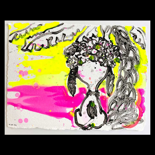 In 2004 Everhart showed a group of nine large-scaled paintings titled “Dots Dogs Drips” with the S2 Art Gallery in Chicago that then traveled to Osaka and Tokyo in 2005. For the next two years Everhart worked to produce two large bodies of works on paper, canvas, and wood. The first exhibition titled “Cracking Up” consisted of seventy-five artworks. The following exhibition Boom Shaka Laka Laka: The Lagoon Paintings was made up of three large scale paintings and one hundred fourteen works on paper ranging in sizes for 10″ x 12″ to 40″ x 60″. Both bodies of work were shown at the Jack Gallery.