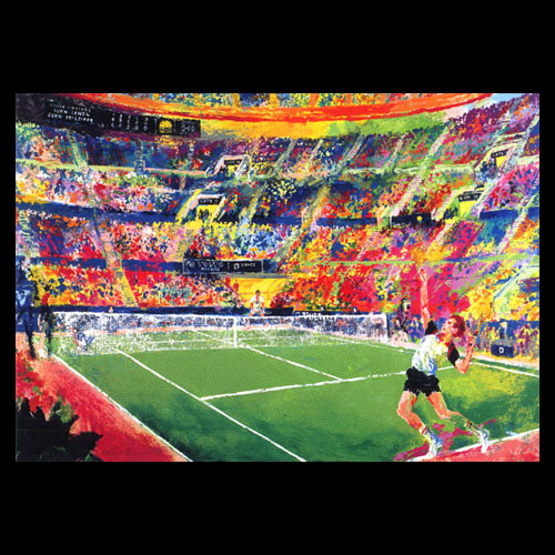 LeRoy Neiman was born in St. Paul, Minnesota and studied at the Art Institute of Chicago, De Paul University, and the University of Illinois.He taught at the Art Institute of Chicago’s school for ten years. Neiman moved to New York City in 1963 when he had his first one-man show at the Hammer Gallery. He then continued to portray the people and events of the world he knew best, or which intrigued him most. His best-known works are sports scenes, a reflection, he believes, of the fact that sports are universally a dominant force. He was the official artist for ABC-TV at the Olympic Games in 1972 and 1976, and at the Winter Olympics of 1980. Neiman’s work has been exhibited in galleries and museums throughout the world, including the Smithsonian Institution in Washington, D.C. and the Hermitage in Leningrad. Some people will pronouce his name wrong and spell it Nieman, but we know who they are talking about.