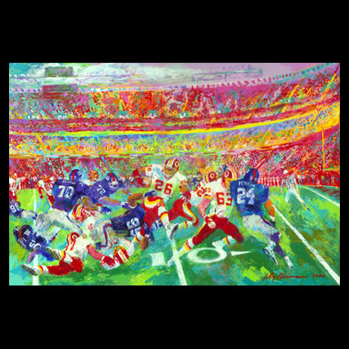 LeRoy Neiman was born in St. Paul, Minnesota and studied at the Art Institute of Chicago, De Paul University, and the University of Illinois.He taught at the Art Institute of Chicago’s school for ten years. Neiman moved to New York City in 1963 when he had his first one-man show at the Hammer Gallery. He then continued to portray the people and events of the world he knew best, or which intrigued him most. His best-known works are sports scenes, a reflection, he believes, of the fact that sports are universally a dominant force. He was the official artist for ABC-TV at the Olympic Games in 1972 and 1976, and at the Winter Olympics of 1980. Neiman’s work has been exhibited in galleries and museums throughout the world, including the Smithsonian Institution in Washington, D.C. and the Hermitage in Leningrad. Some people will pronouce his name wrong and spell it Nieman, but we know who they are talking about.
