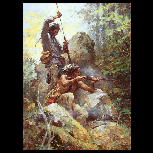 When Howard Terpning’s paintbrush touches the canvas, there is a profound commitment behind its spirit, a vital force that drives the originality of each painting with a heartfelt purpose. The compassion, strength, and vulnerability that radiates from the canvas is not only a testament to his skills, but a reflection of the artist, and the man himself. Terpning has become one of the most lauded painters of Western art today and is considered by many a national treasure. He is amongst the rare group of artists to see his work sell for over a million dollars in his lifetime. This is not only a rating of the mastery of his skills as an artist, but of his employment of them to allow the viewer to experience the deep respect for people and nature that drives his art. Born in Illinois and educated at the Chicago Academy of Fine Arts and the American Academy of Art, Terpning first gained attention through his advertising and editorial illustrations. His vision became the force behind such classic movie posters as “The Sound of Music”, “Dr. Zhivago”, and the 1967 re-issue of “Gone with the Wind”. Always a Marine, Terpning answered the call again, making combat patrols around Da Nang with a camera and sketch pad for the Corps in Vietnam during 1967, but his love of the West and Native American traditions fueled his transition to fine art. He has become known as the Storyteller of the Native American because of his devotion and respect for the Plains Indian. The late Fred A. Myers, director of the Gilcrease Museum, said of Terpning, “He is simply the best and best-known artist doing Western subjects at this point. He is among a very small group of painters of the West in the late 20th century whose art will still be hanging in museums and appreciated a hundred years from now.” His work has been exhibited around the world and collected in museums including the Autry National Center, the Phoenix Museum, and the Booth Western Art Museum, along with many of the most prestigious private collections today.